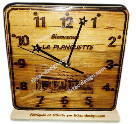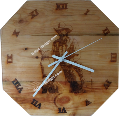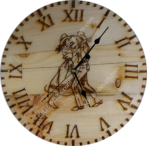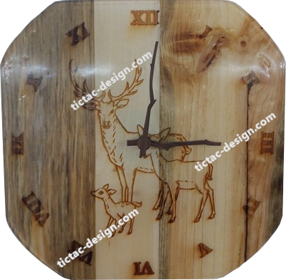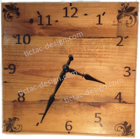 Toutes nos horloges sont fabriquées à partir de bois de palettes recyclées. La fabrication est réalisée en France. Elles sont uniques et gravées à la demande. Nous mettons un soin tout particulier à leur réalisation.